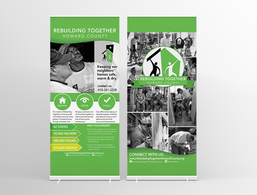 Rebuilding Together Howard County, which provides free home repairs to low-income families in Howard County, met with AMPs about creating promotional banners to capture their mission and work. AMPs created these banners through creative design, flat design and emotional imagery.